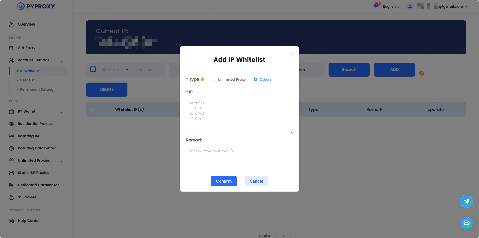 If you want to remove or update the list, click Edit or Delete button in Operate column. If you need more IPs, please get in touch with our customer support team at [email protected]. IP whitelisting allows you to access our Residential Proxy pool by simply connecting via whitelisted IPs.